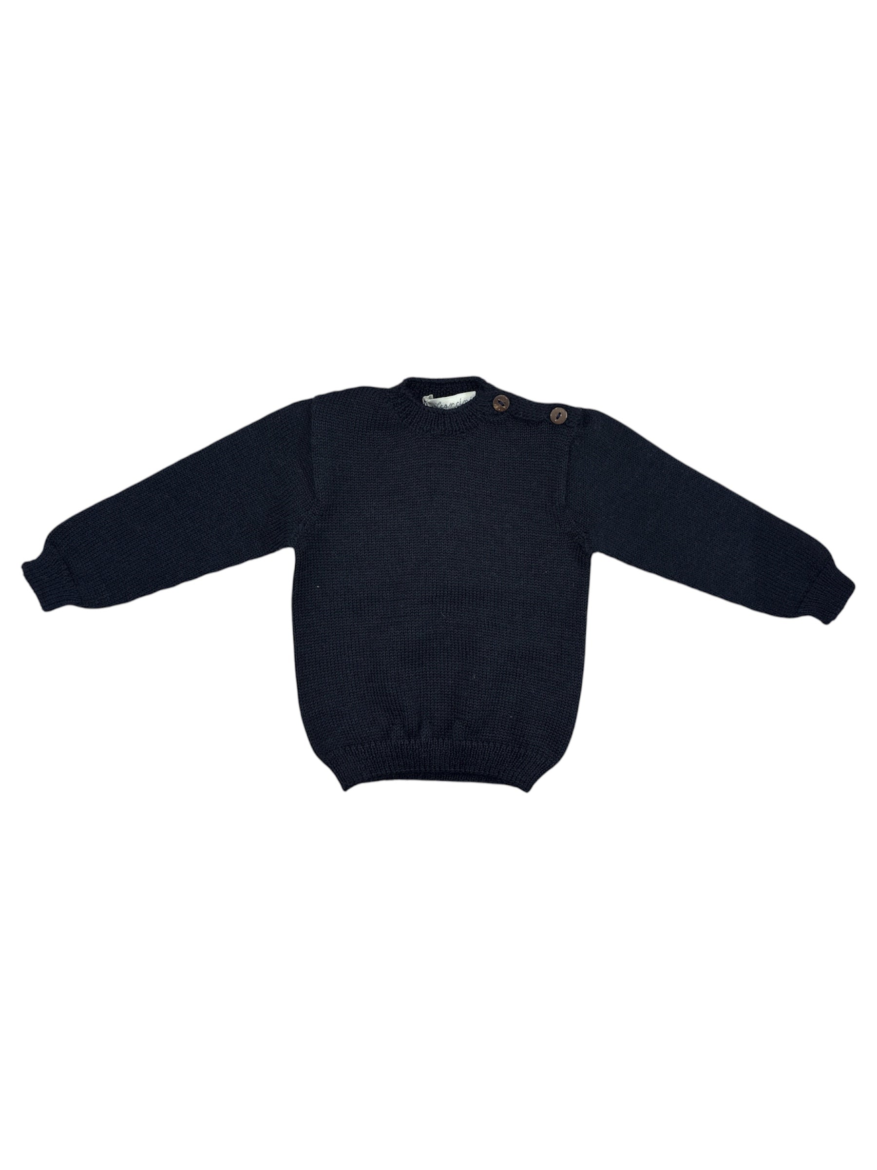 Un maglione caldo e morbido, realizzato in 100% lana merinos, ideale per accompagnare i più piccoli nelle giornate fredde. Il design semplice e confortevole è arricchito da due bottoni laterali sulla spalla, che facilitano la vestizione e aggiungono un tocco delicato. Perfetto per un look pratico e raffinato in ogni occasione