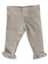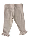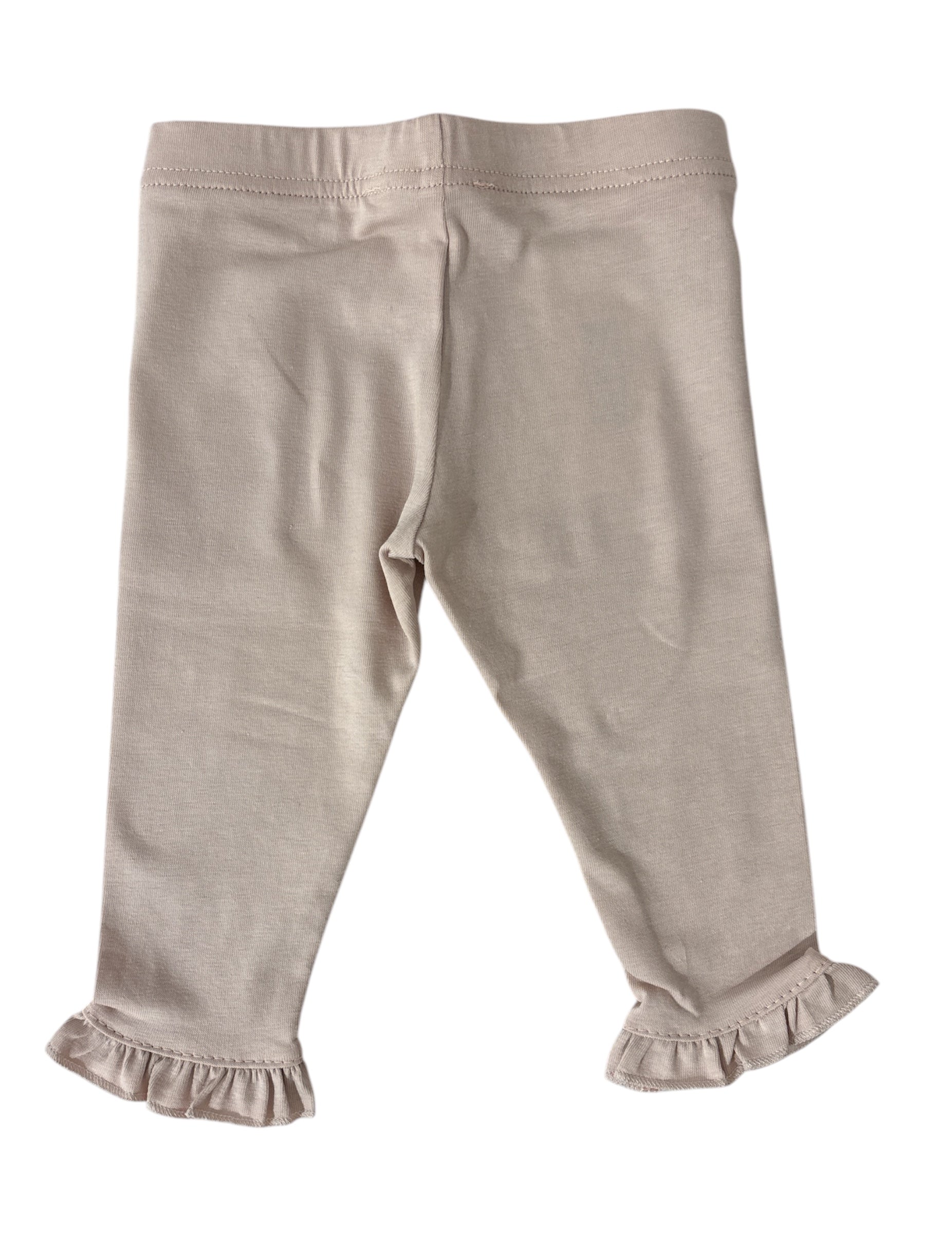 Leggins morbidi e confortevoli in cotone elasticizzato, perfetti da abbinare alla maglia coordinata. Il delicato color cipria dona un tocco raffinato e femminile, mentre il volant alla caviglia aggiunge un dettaglio romantico e curato. La vestibilità elasticizzata assicura comfort e libertà di movimento per ogni momento della giornata